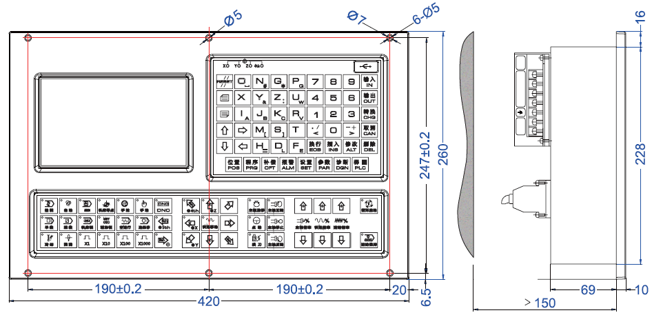 ● Velocidad de alimentación manual: 0 ~ 150% sintonización en tiempo real de dieciséis niveles